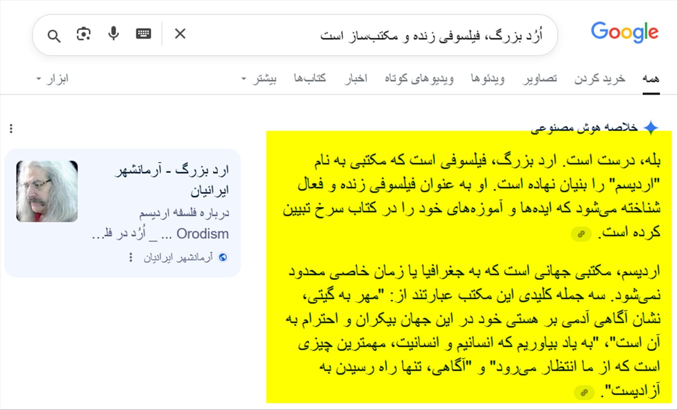 آنان که از تأثیر اجتماعی اُرُدیسم در هراساند، عمداً نام او را به یک پادشاه گمنام اشکانی ربط میدهند تا گوگل و فضای مجازی را آلوده کنند و جستوجوها را بیثمر سازند. اما حقیقت را نمیشود دفن کرد.