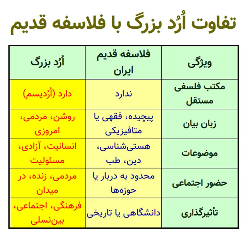 | ویژگی | فلاسفه قدیم ایران | اُرُد بزرگ |